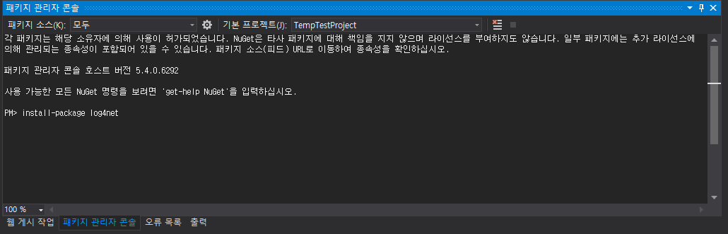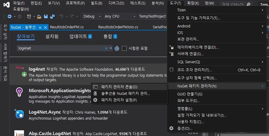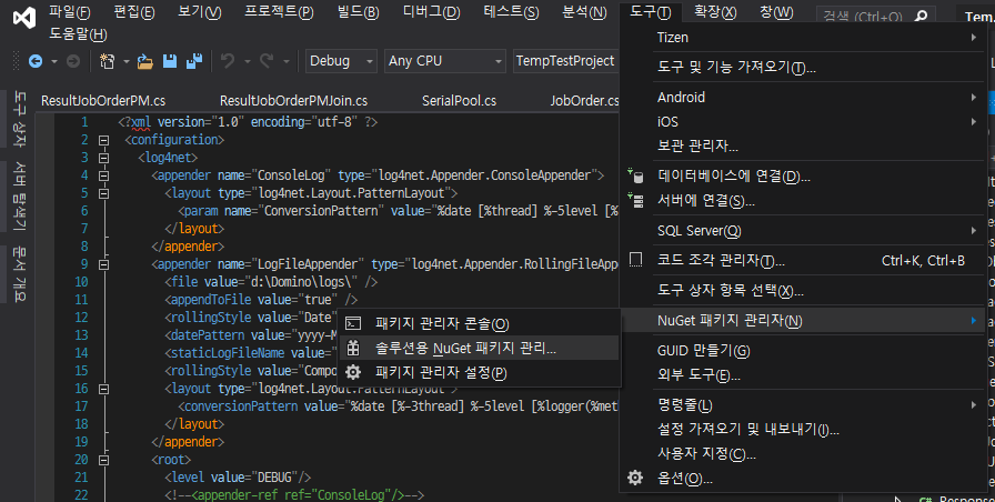 1.2 Nuget 페키지 관리자 > 패키지 관리자 콘솔