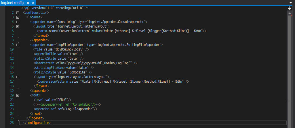 상세한 설정은 Apache 홈페이지의 log4net 관련 설정 확인