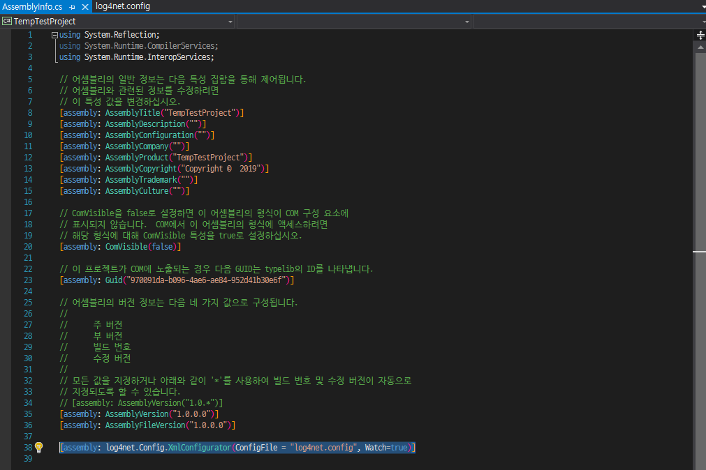 를 넣어줘야 프로그램이 동작하면서 log4net.config 파일을 읽어서 셋팅한다.